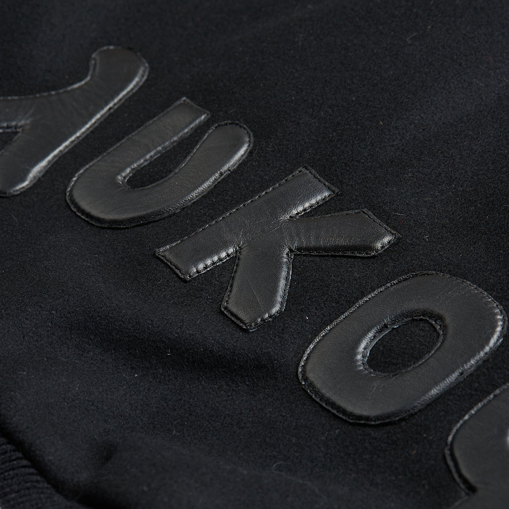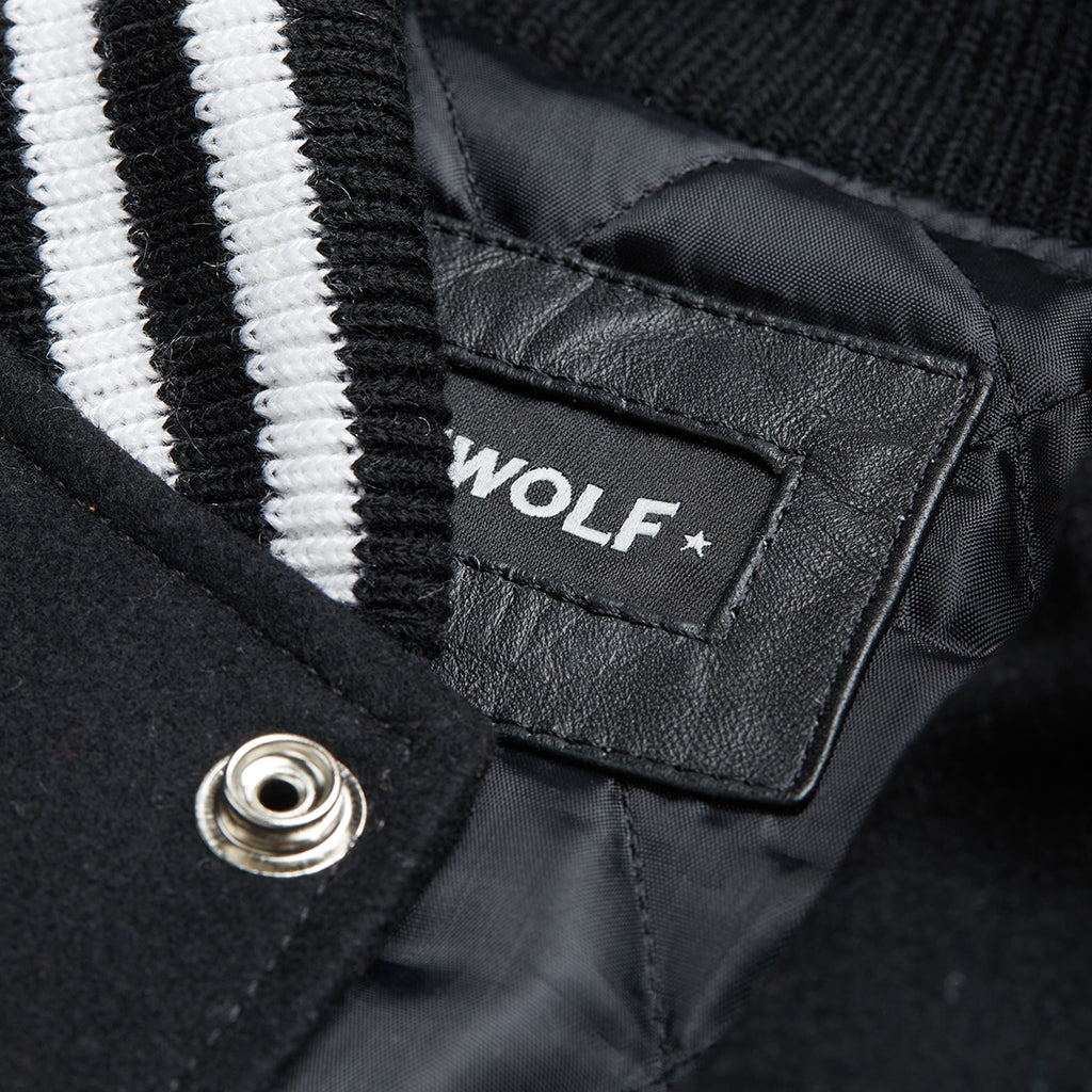 From the minds and hearts of our crafted masters, our contemporary Alfa Varsity Jacket comes into life with our "Lastwolf" name in one of the most difficult and oldest stitching techniques: The chain stitch, a higher level of craftsmanship stitch by stitch across front panels, conveying our legacy and heritage. On the back, a genuine leather hand sewn patch reads the word “wolf” in the classic Greek alphabet. The sleeves are made of a soft calf leather in black color