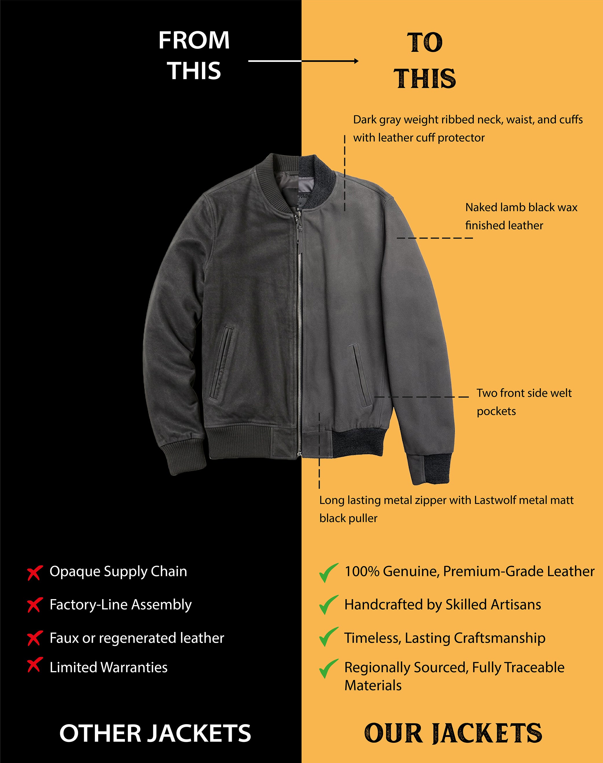 Our jackets are designed in the United States and expertly crafted exclusively for LASTWOLF in Mexico.