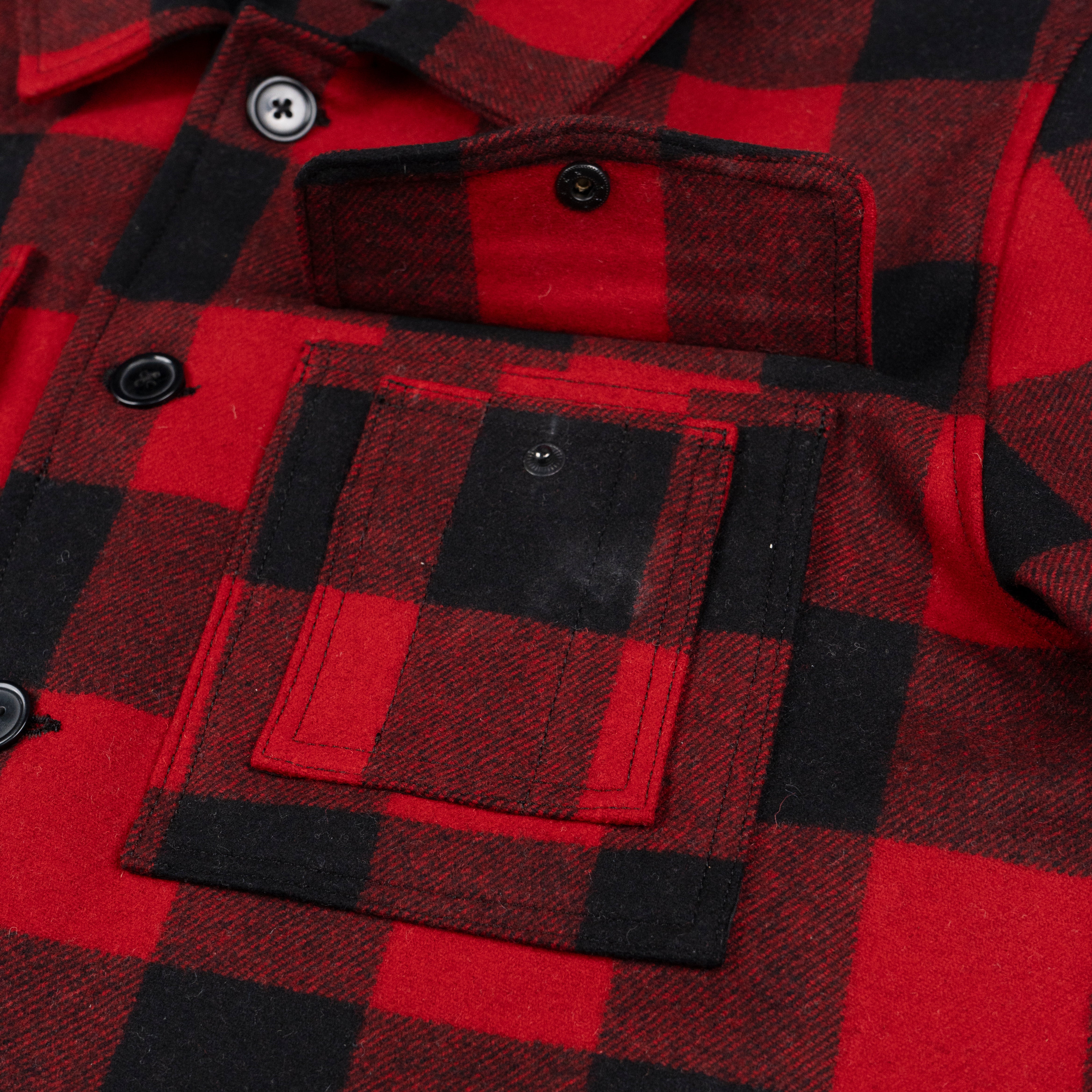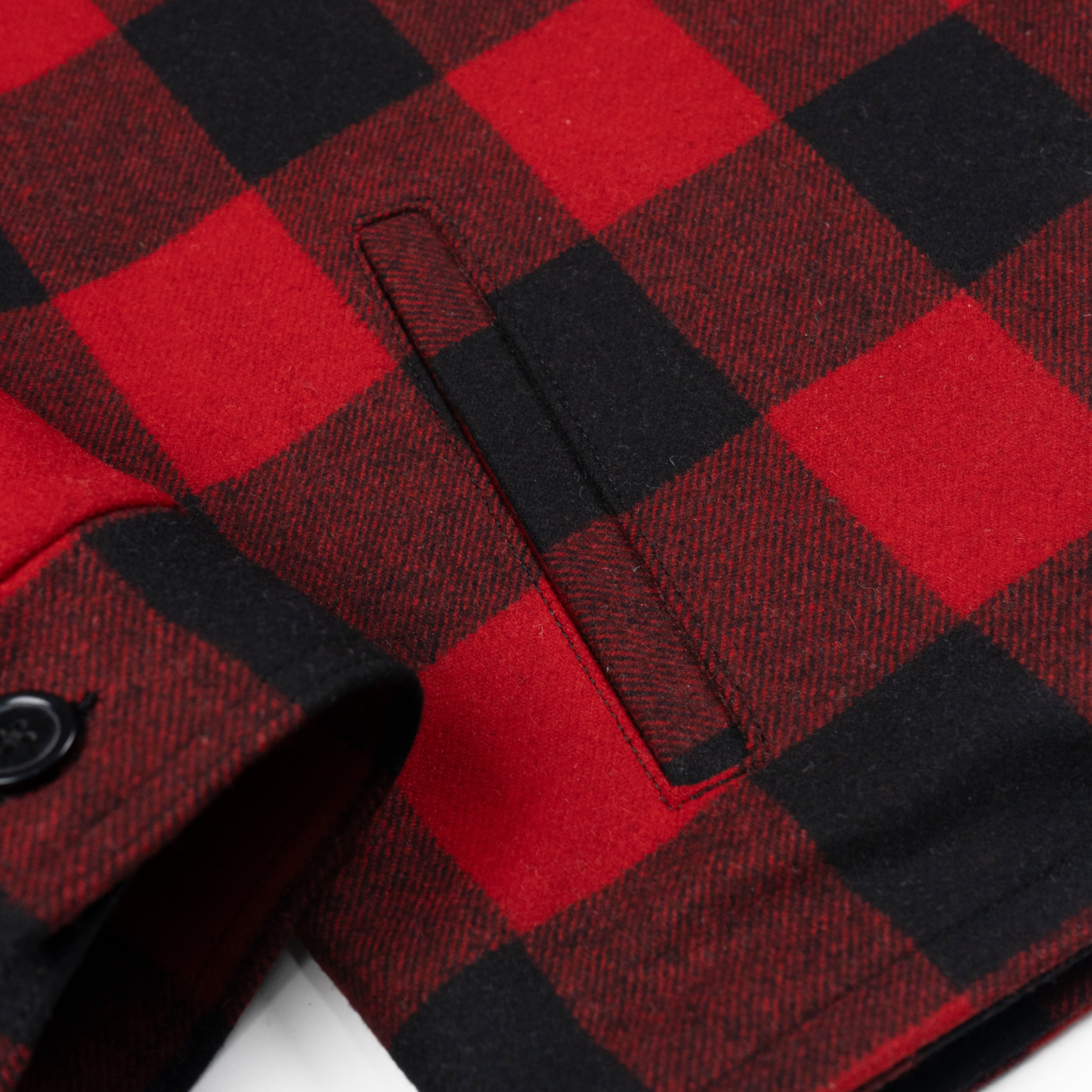 The Mackinaw Wool Jac-Shirt is our nod to timeless workwear that never quits. Woven from heavyweight 18oz wool in our signature Lumberjack Red/Black Plaid, this jac-shirt keeps you warm when the wind cuts deep and the fire’s still hours away.