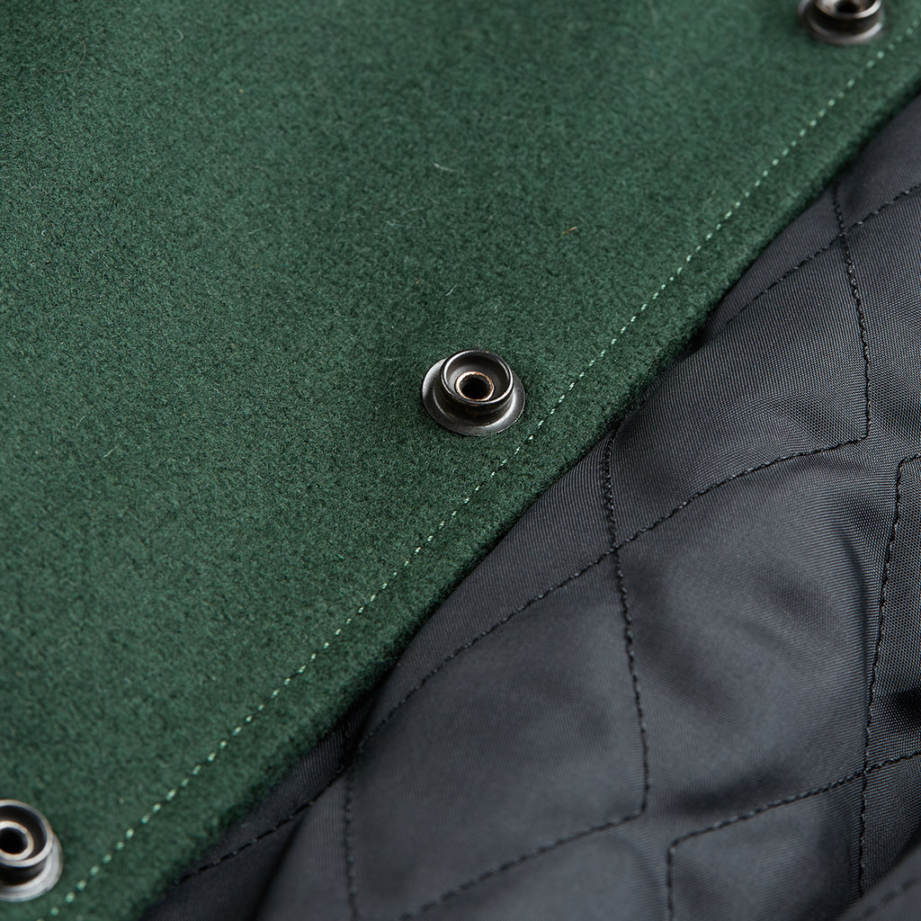 Our classy Pine Varsity Jacket has a high degree of versatility. You can wear it to go to a baseball game, out to dinner with friends or even to a business meeting. You will feel relaxed and warm.