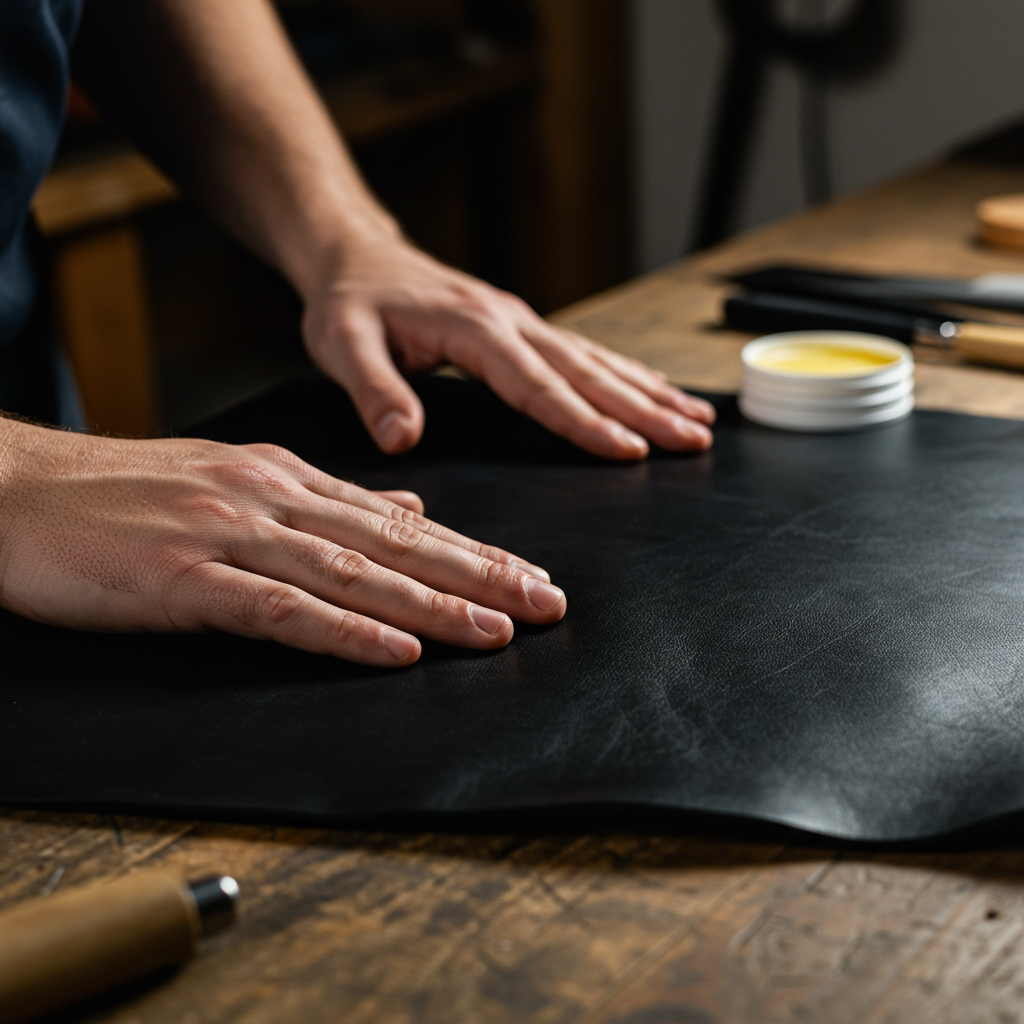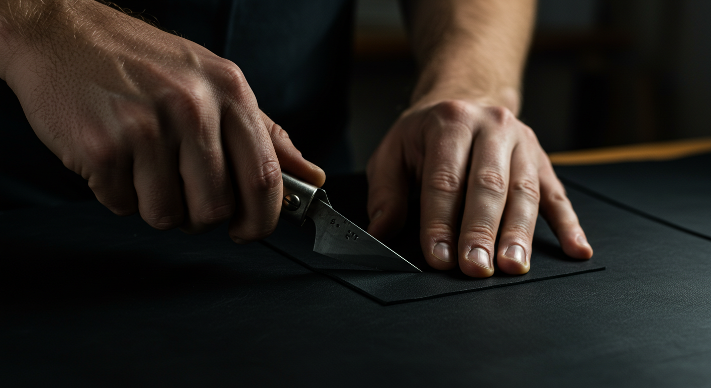 We begin with carefully selected full-grain bovine hides — chosen for their strength, texture, and natural character. It's the first step in transforming raw material into timeless utility.