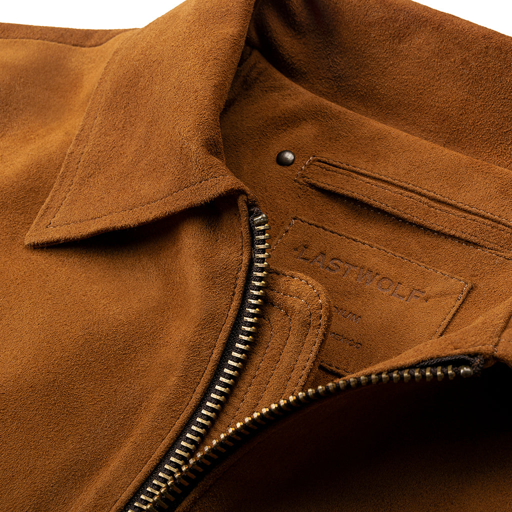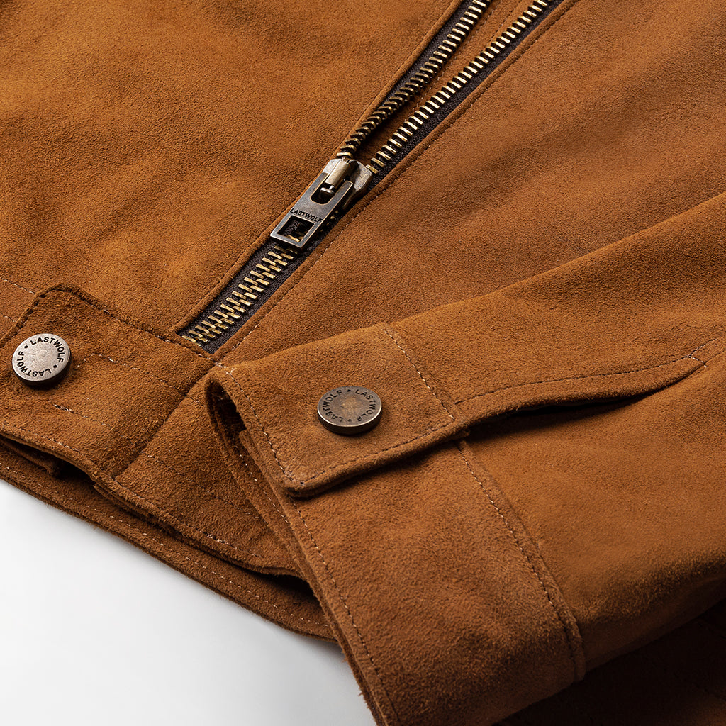 Buttery cinnamon lamb suede soft-hand touch. Our Wharton Moto Suede Jacket is a classic yet daring design moto jacket for the urban jungle with stretching lining that provides great comfort and warmth for everyday occasions. It comes with a safety snap on the waist to secure the opening of the bottom of the jacket.