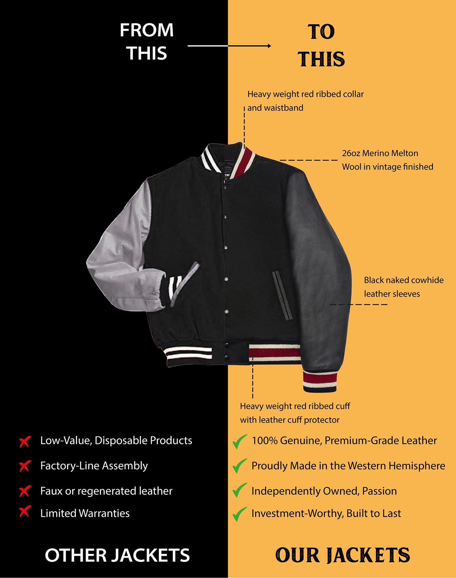 Premium Leather Sleeves & Ribbed Cuff